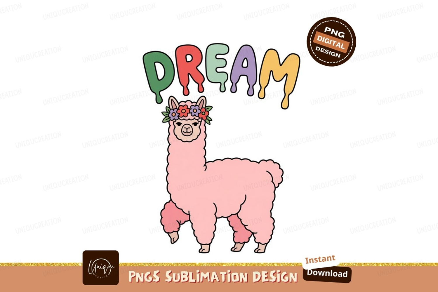 Text Cartoon Animal Cute Pink Flowers Dream Llama Frappe Attire