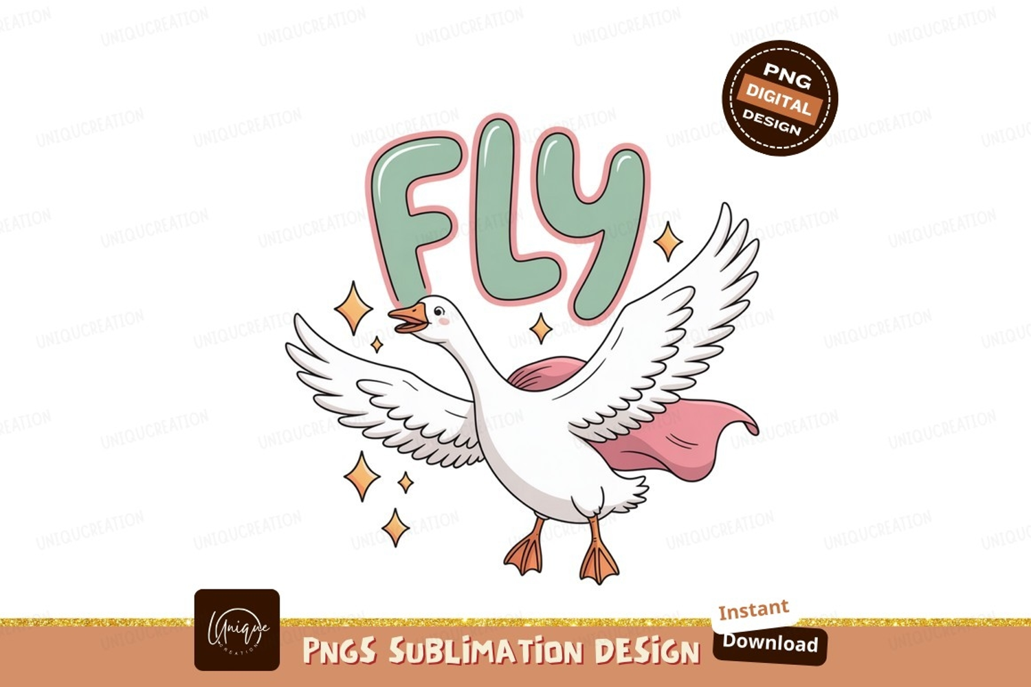Goose flying with cape stars text example image 1