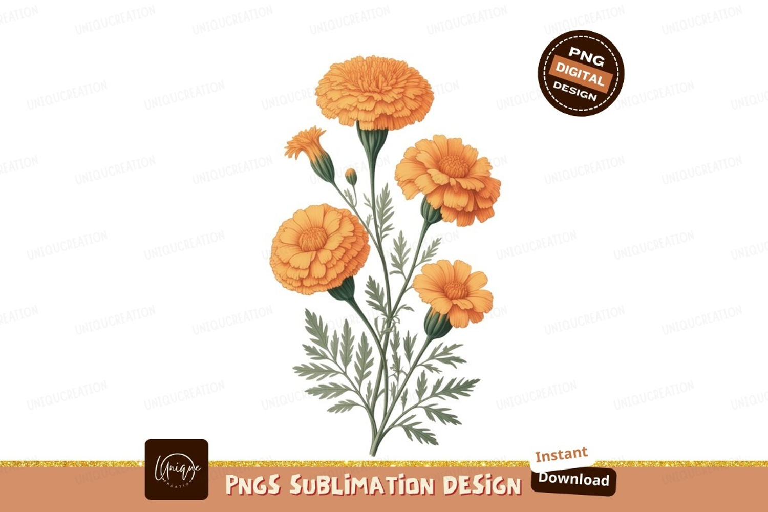 Similar Design Products to Orange Marigold Flowers Botanical Illustration image