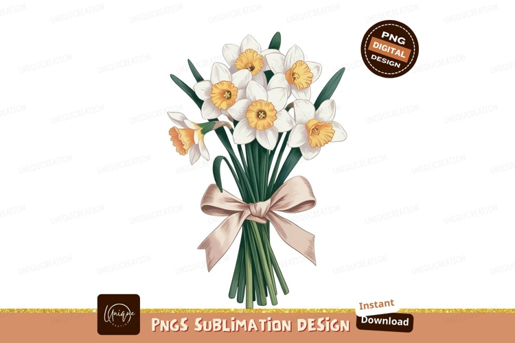 Similar Design Products to White daffodils with orange centers tied with ribbon