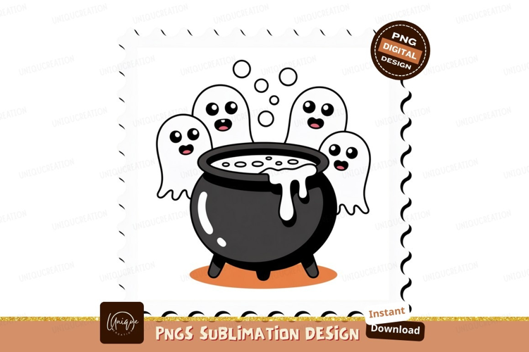 Cute ghosts around bubbling cauldron halloween potion example image 1
