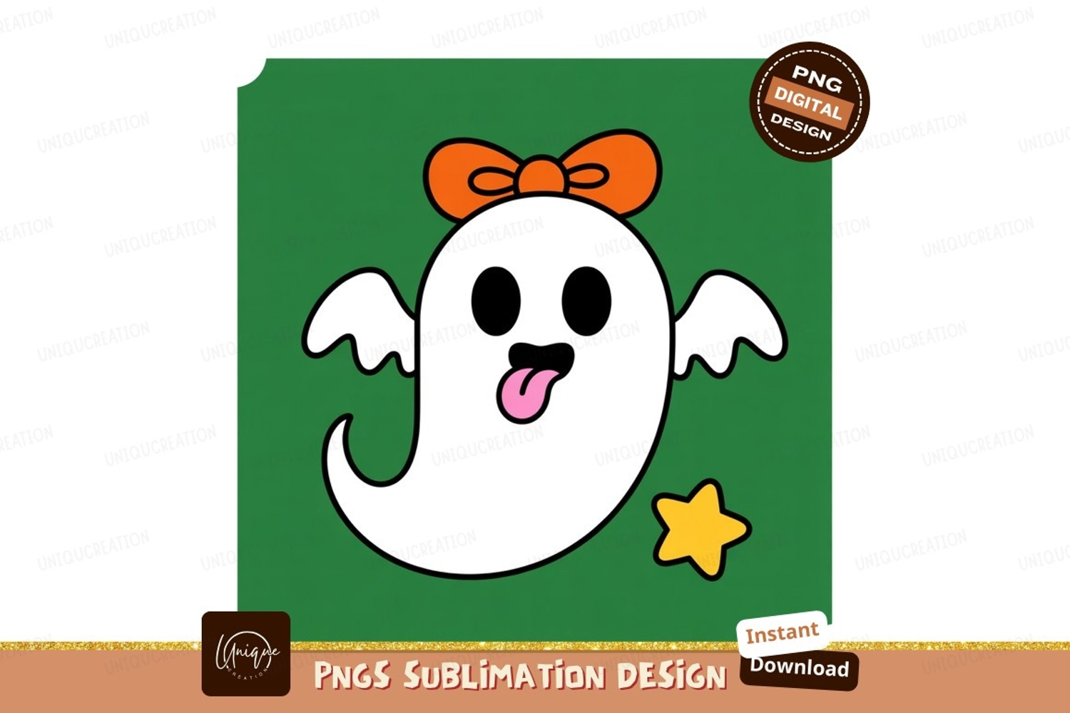 Similar Design Products to Black ghost with orange bow and pink tongue image