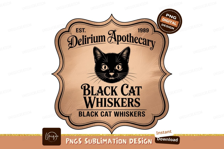Vintage Retro Label Animal Black Cat Cane Whiskers Apothecary Frappe