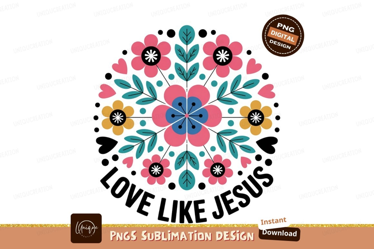 Floral mandala love like jesus design pink example image 1