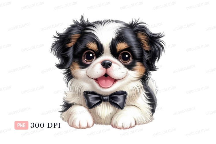 Similar Design Products to Adorable fluffy puppy wearing bow tie black white