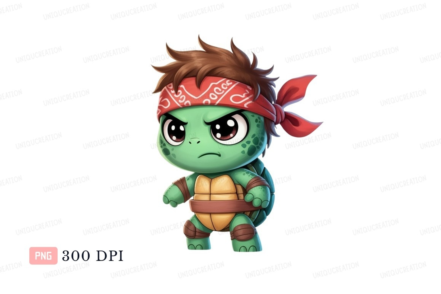 Character Cartoon Cute Green Angry Bandana Brown Hair Red Turtle