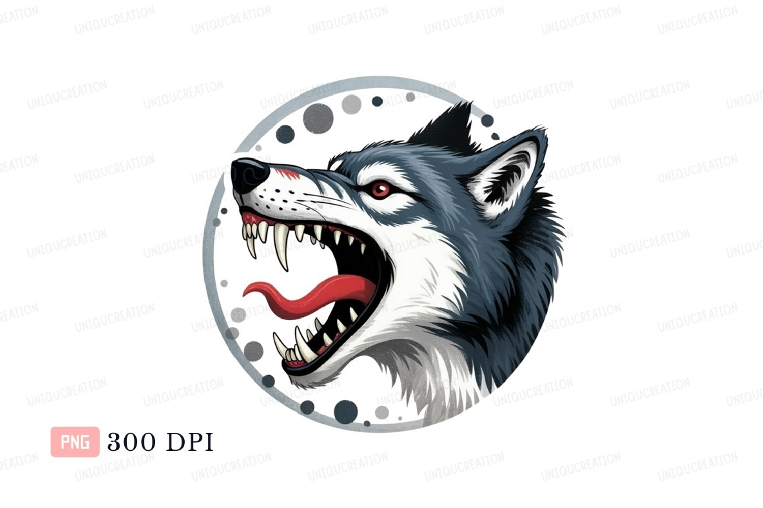 Fierce wolf snarling red eyes sharp teeth animal predator example image 1
