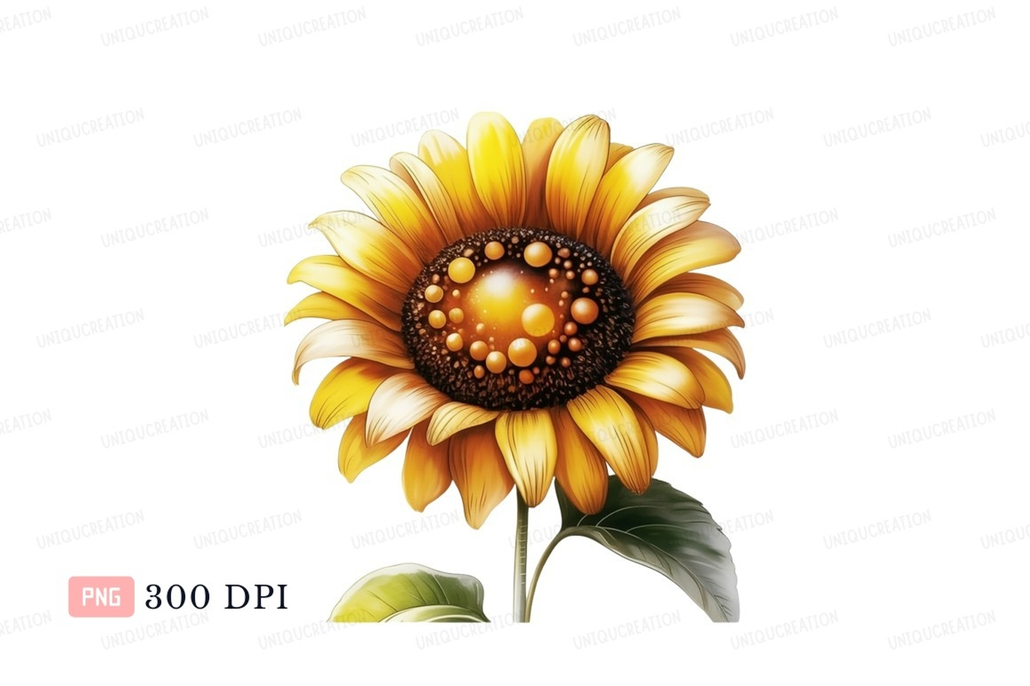 Similar Design Products to Golden sunflower with textured center and green leaves