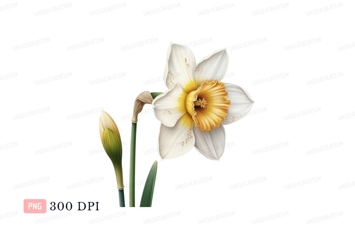 Nature Green Flower Botanical Yellow Bud White Stem Daffodil Petal