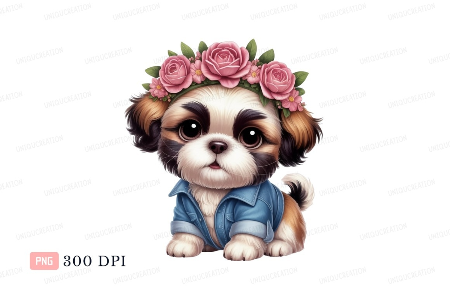 Similar Design Products to Adorable puppy wearing floral crown and denim jacket