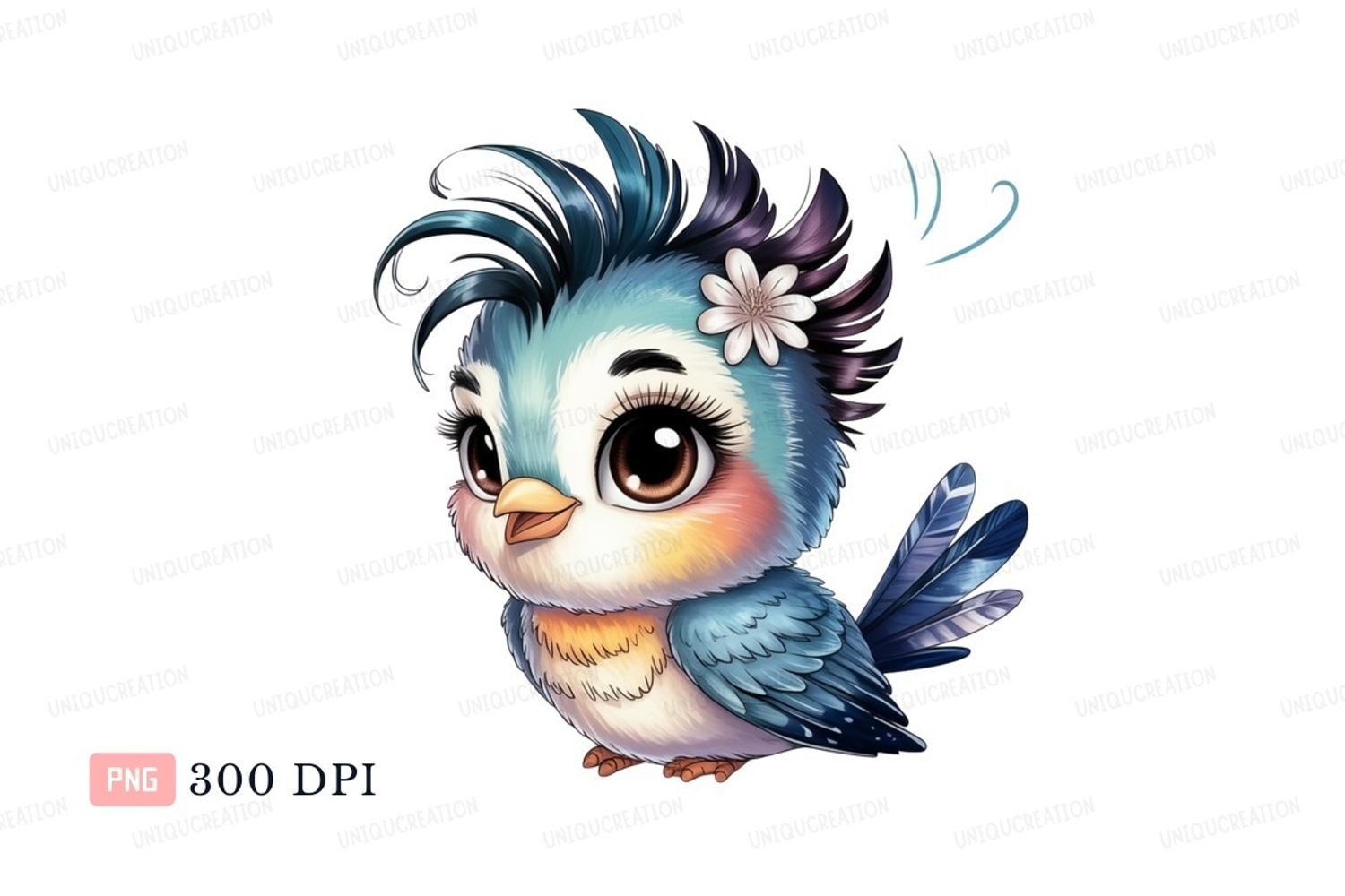 Cartoon Cute Flower Clipart Blue Bird Png White