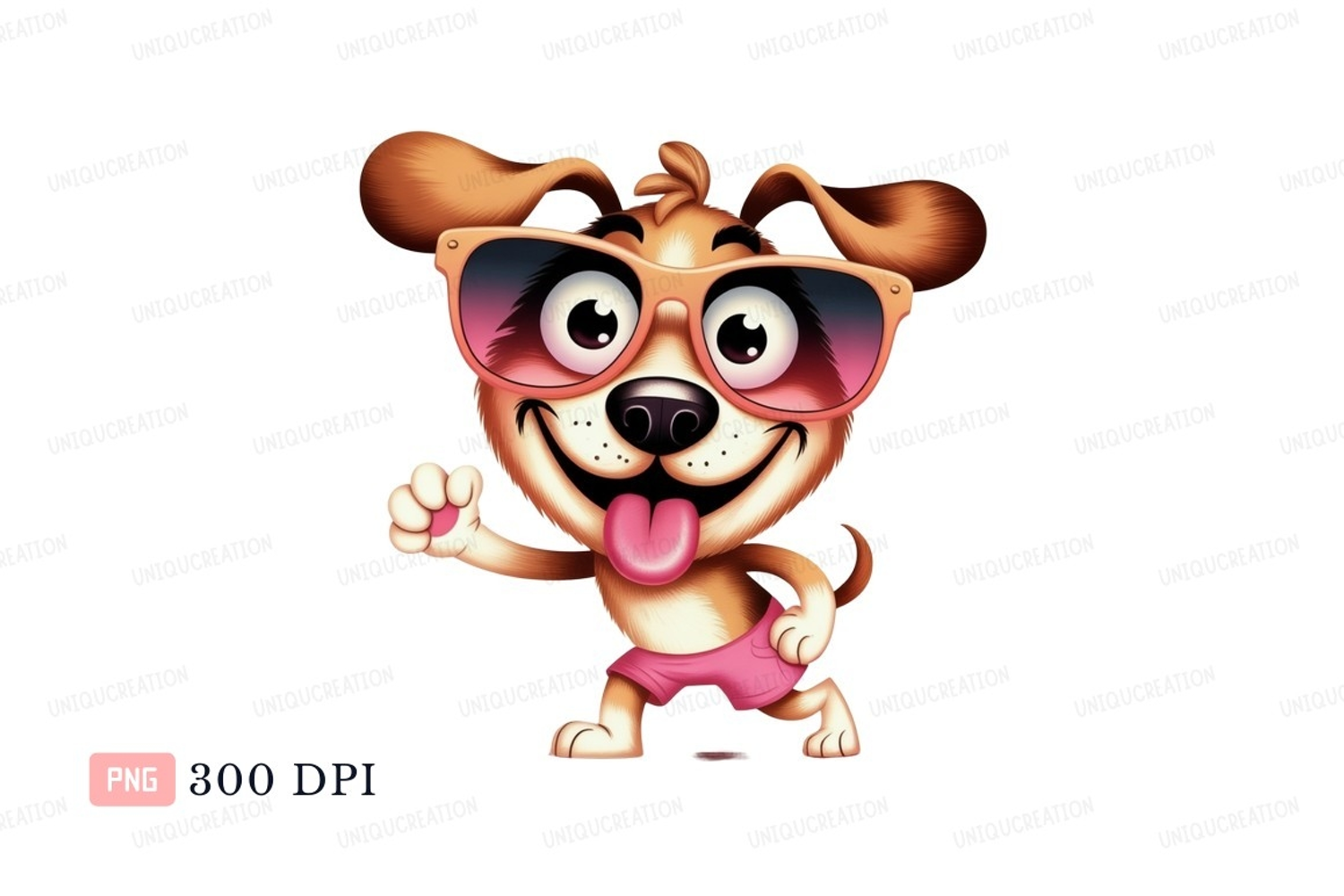 Similar Design Products to Happy dog wearing sunglasses and pink shorts image