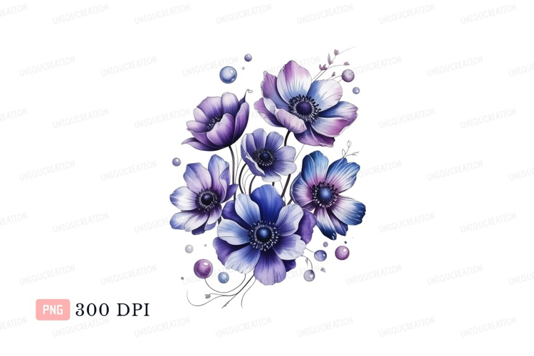 Similar Design Products to Purple blue anemone flowers with pearls image