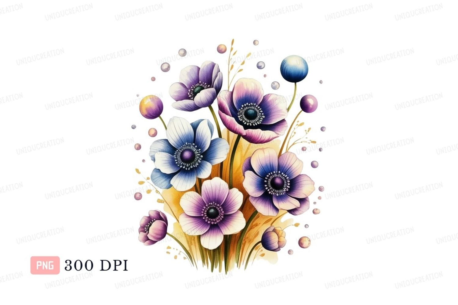 Illustration Watercolor Nature Floral Flowers Clipart Purple Blue Bouquet Petals