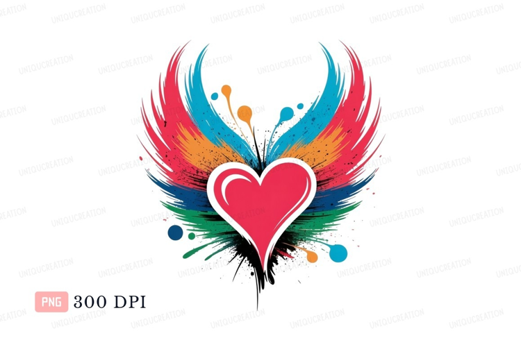 Pink Green Heart Splash Abstract Orange Blue Yellow Red Wings