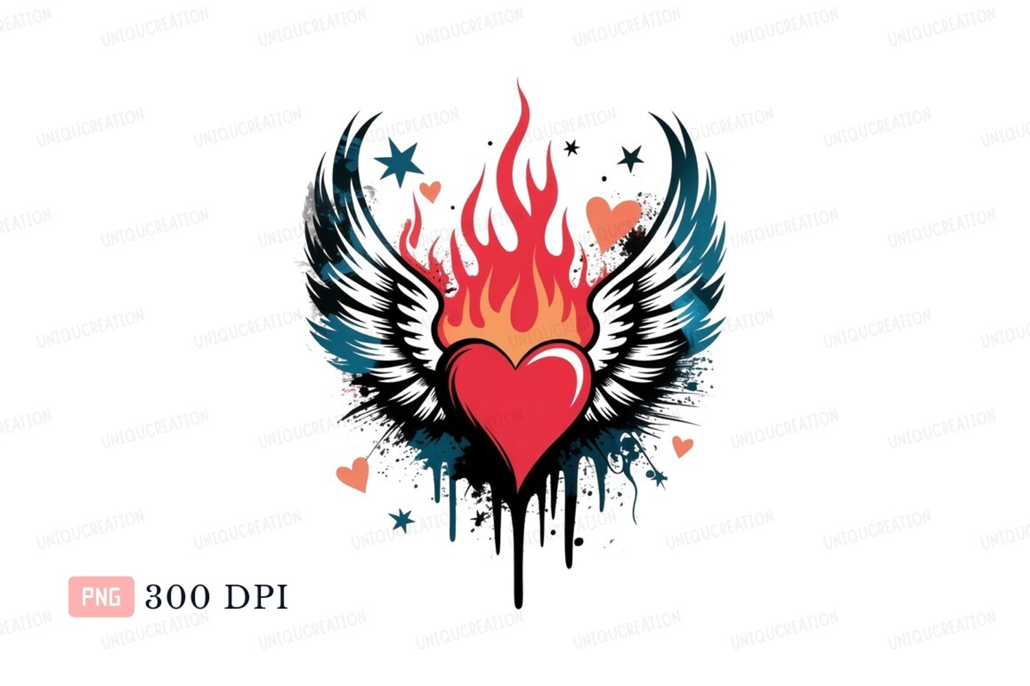 Black Heart Clipart Orange Blue Png Red Flame Wings Stars