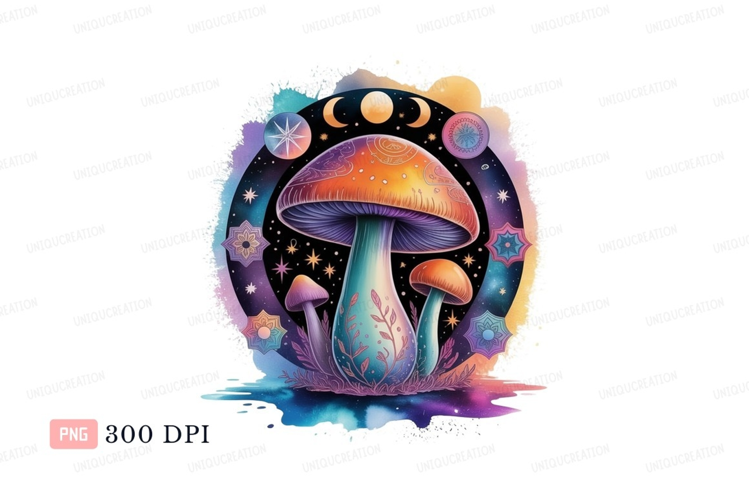 Psychedelic mushrooms cosmic celestial circle fantasy example image 1