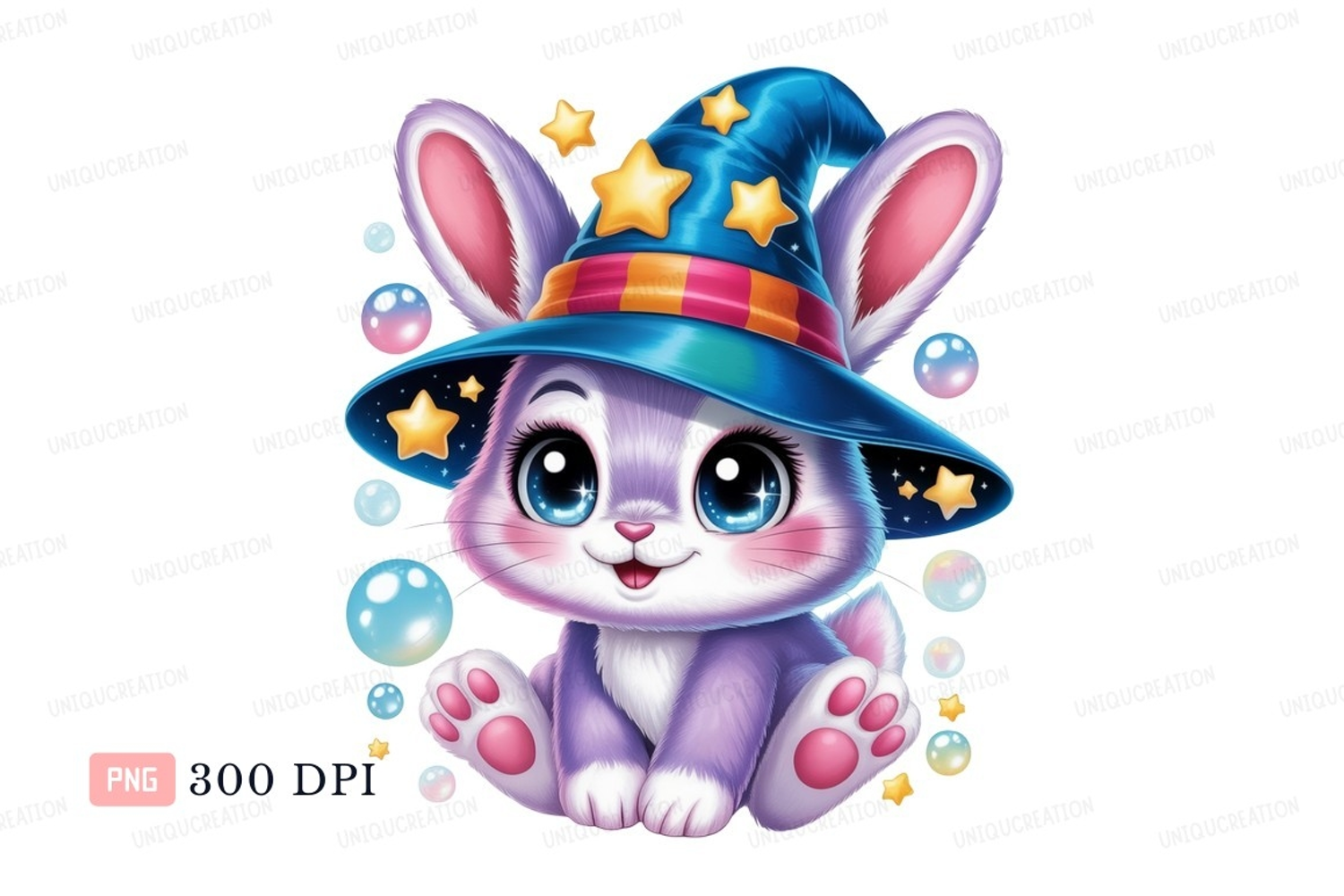 Purple bunny wearing wizard hat stars