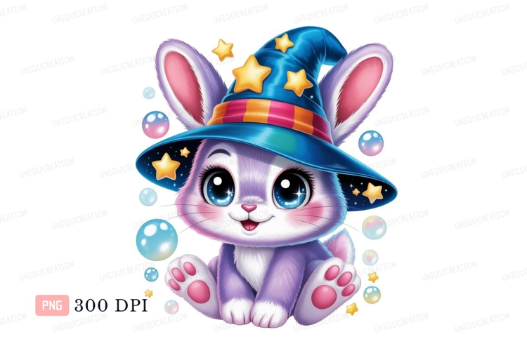 Purple bunny wearing wizard hat stars example image 1