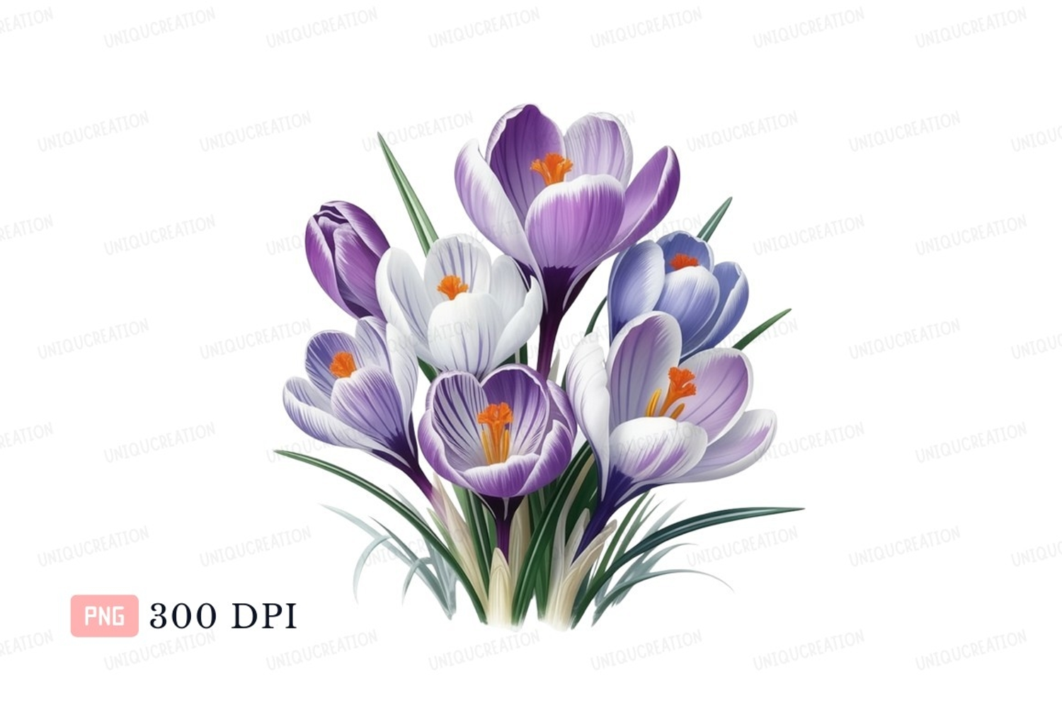 Green Flowers Leaves Purple Orange Blue White Petals Crocus Pistils