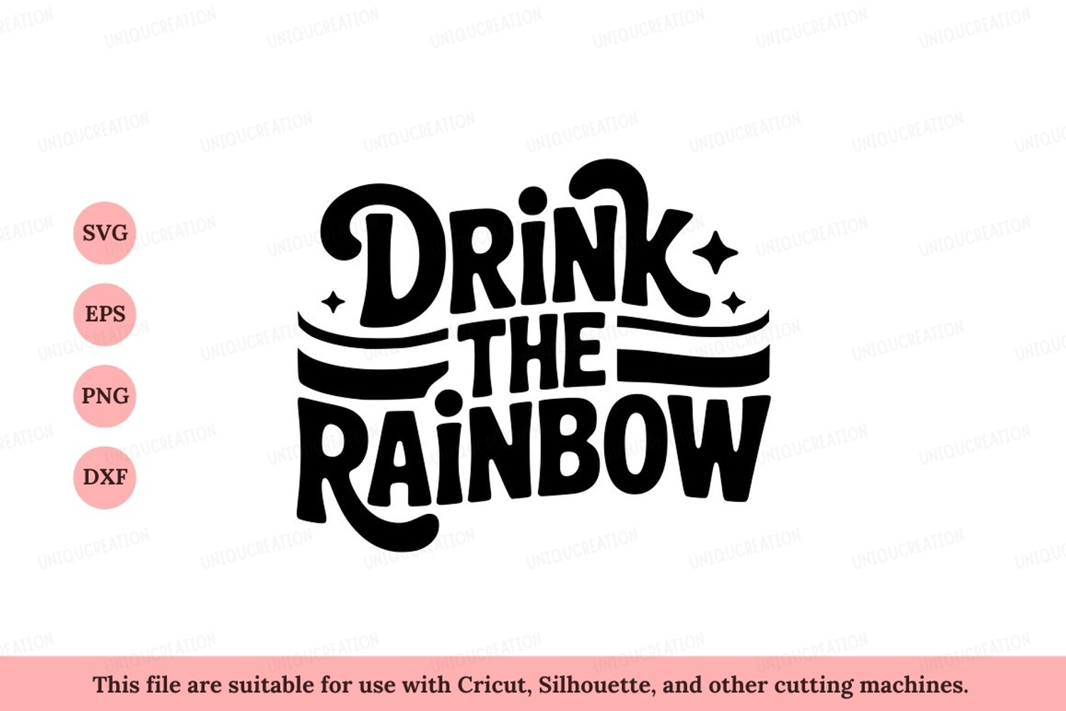Drink the rainbow lettering black white example image 1