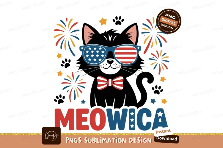 Bow Cat Tie Fireworks Sunglasses Patriotic Stars Ears Humor Frappe