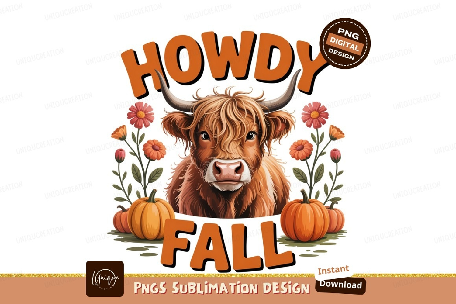 Flower Autumn Fall Orange Pumpkin Cow Highland Humor Era Frappe