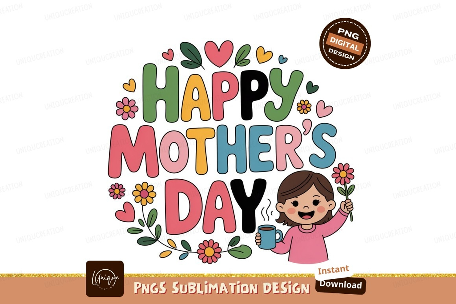 Similar Design Products to Happy Mothers Day colorful text and girl flower