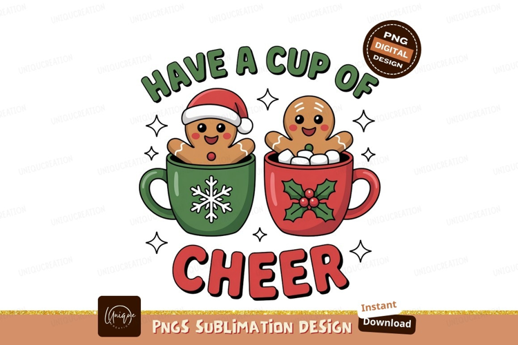 Gingerbread men in mugs with holiday text cookie christmas example image 1