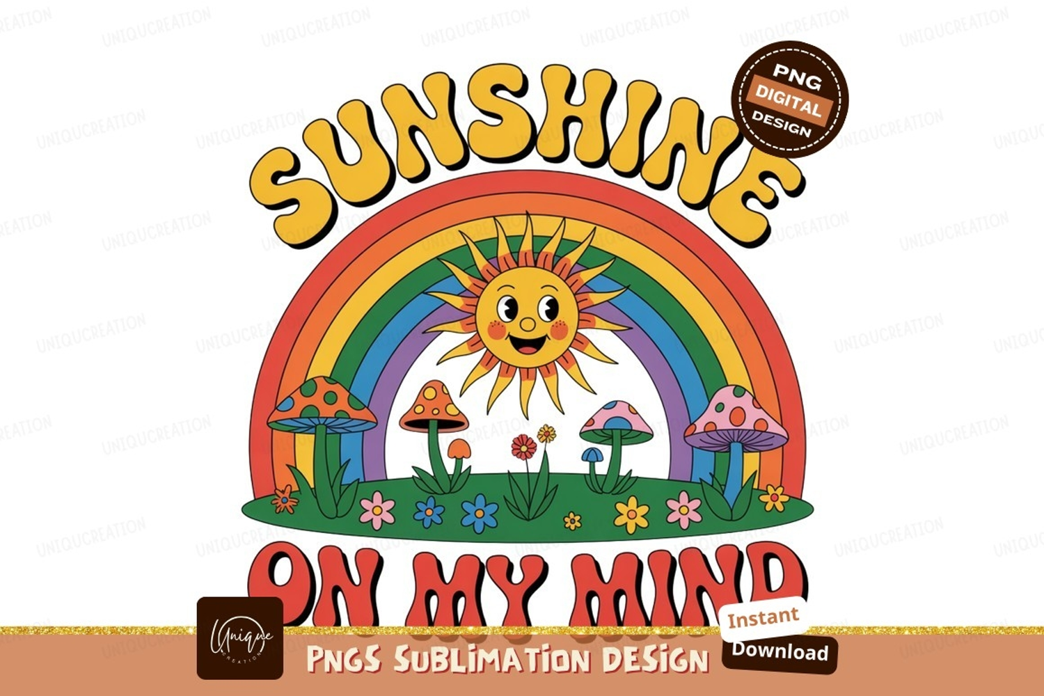 Happy sun rainbow mushrooms flowers text image example image 1