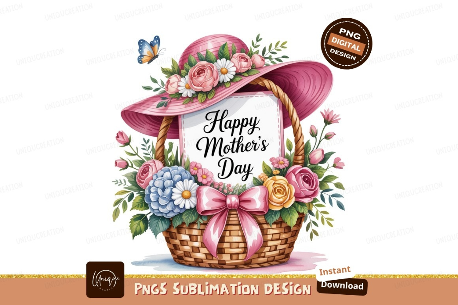 Similar Design Products to Pink hat basket floral greeting flowers butterfly