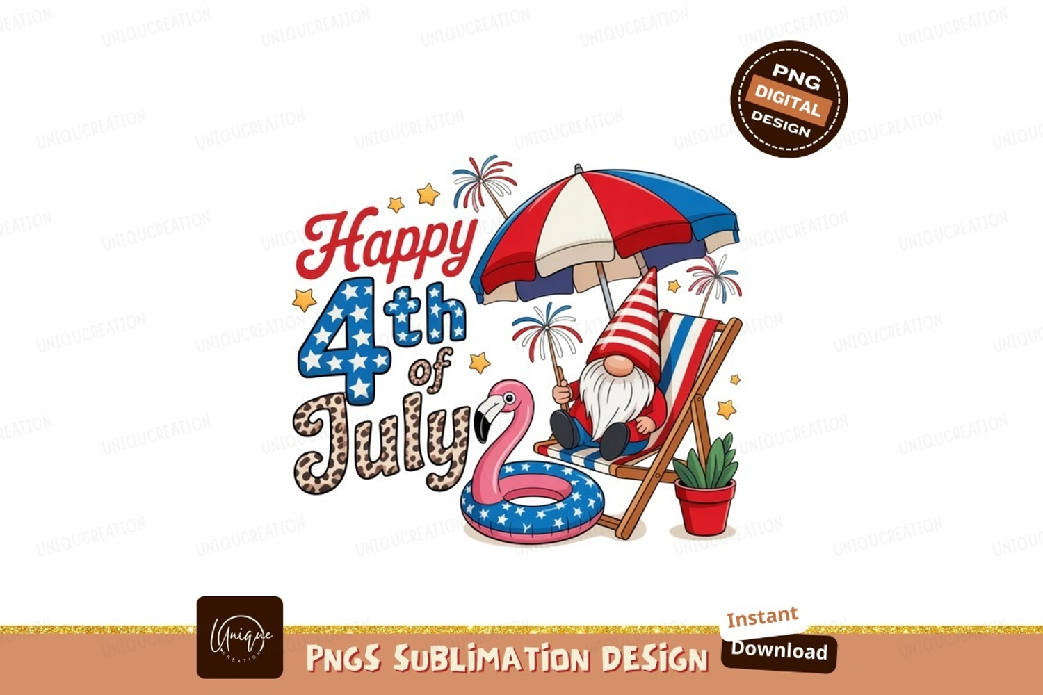 Gnome Relaxing Beach Fourth July Celebration holiday example image 1