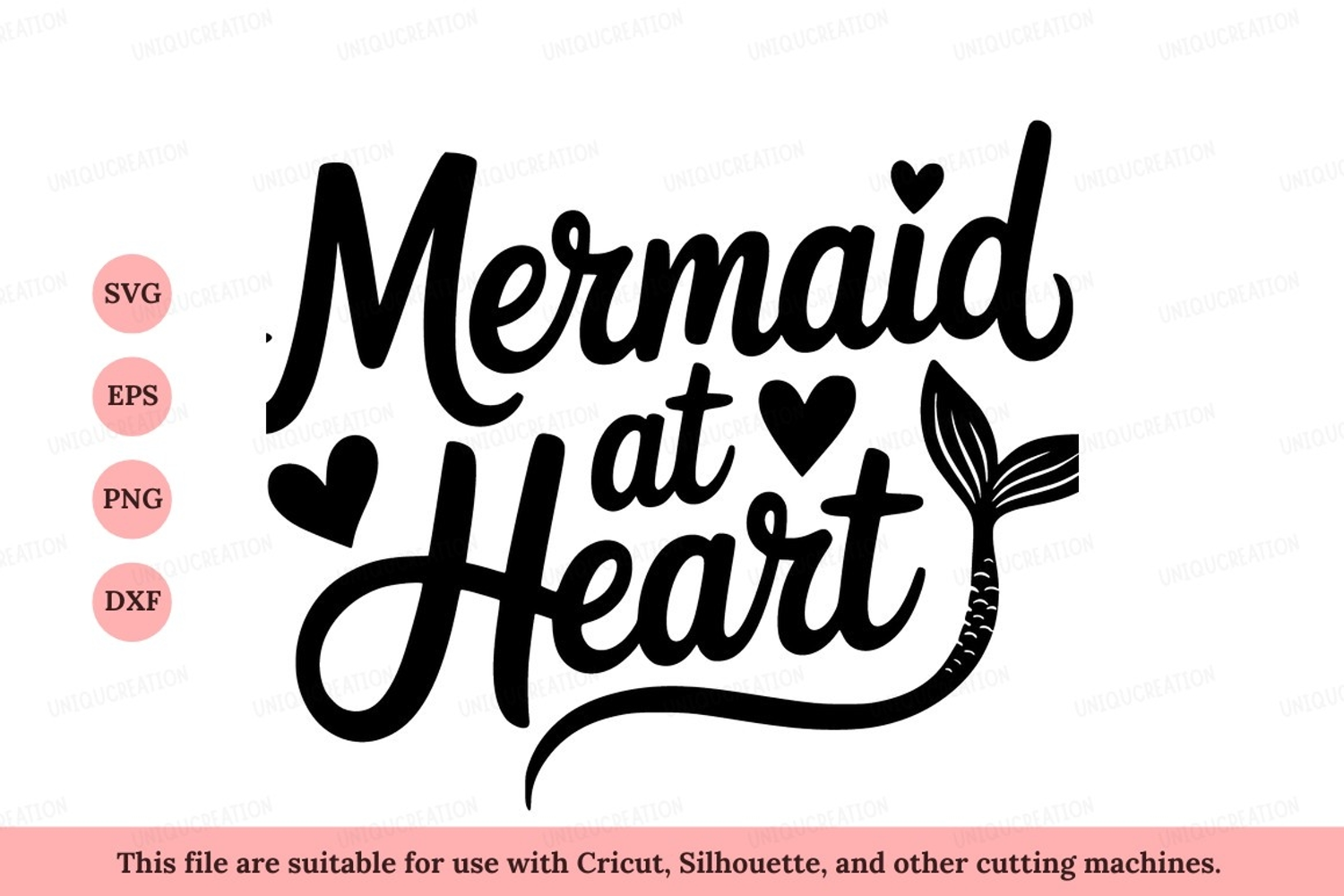 Mermaid heart tail black white example image 1