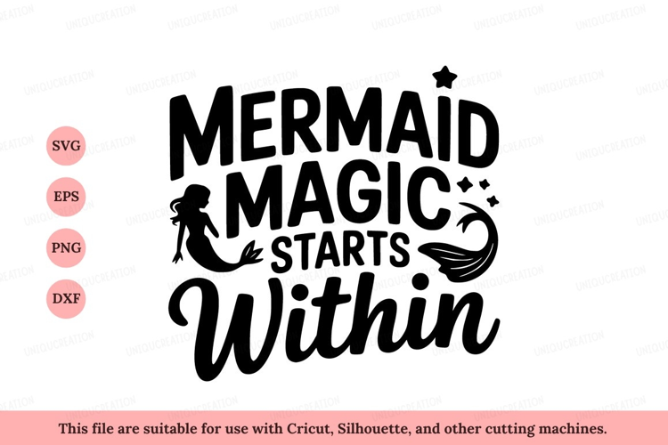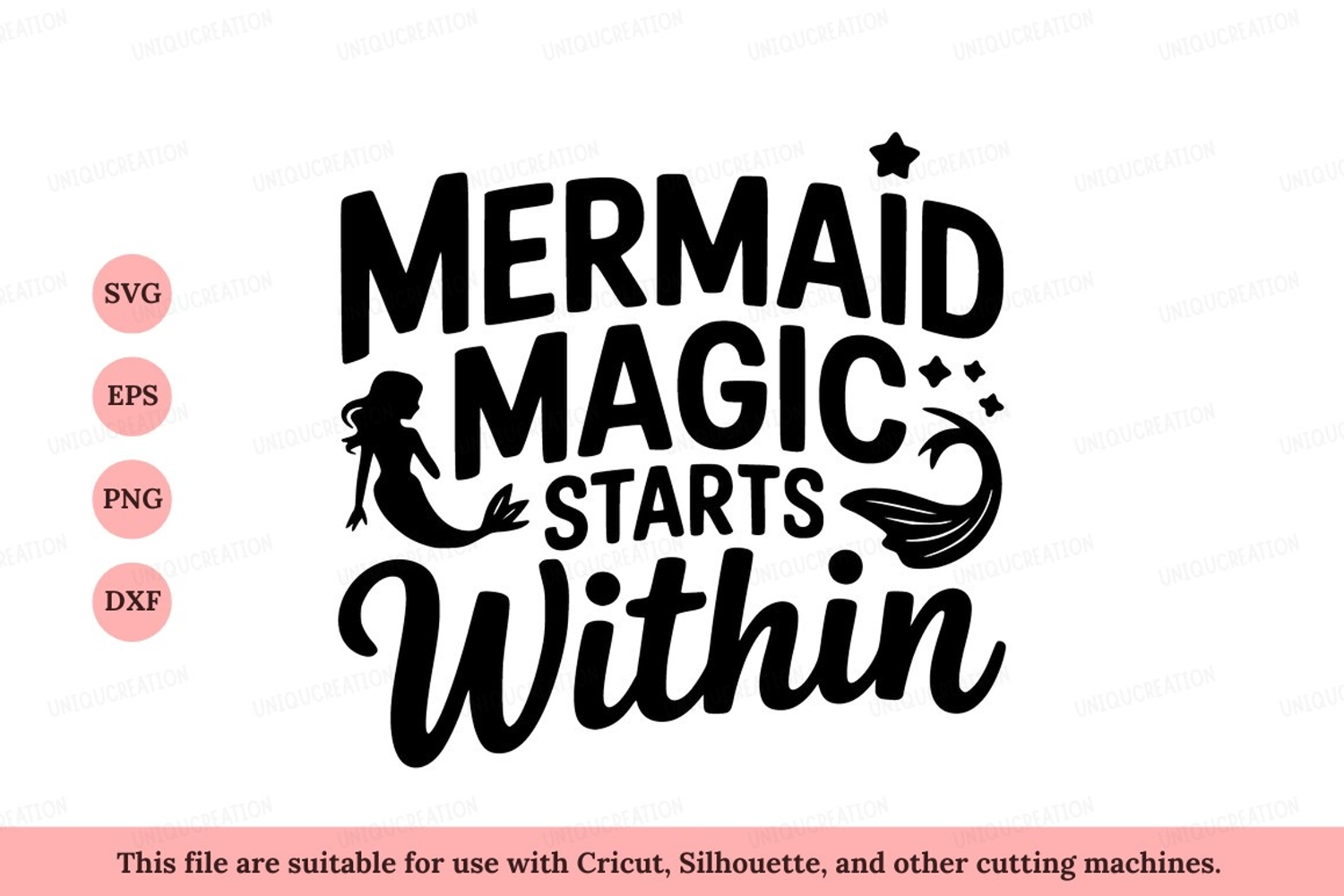 Black Silhouette Magic White Star Mermaid Tail Sparkles Starts Within