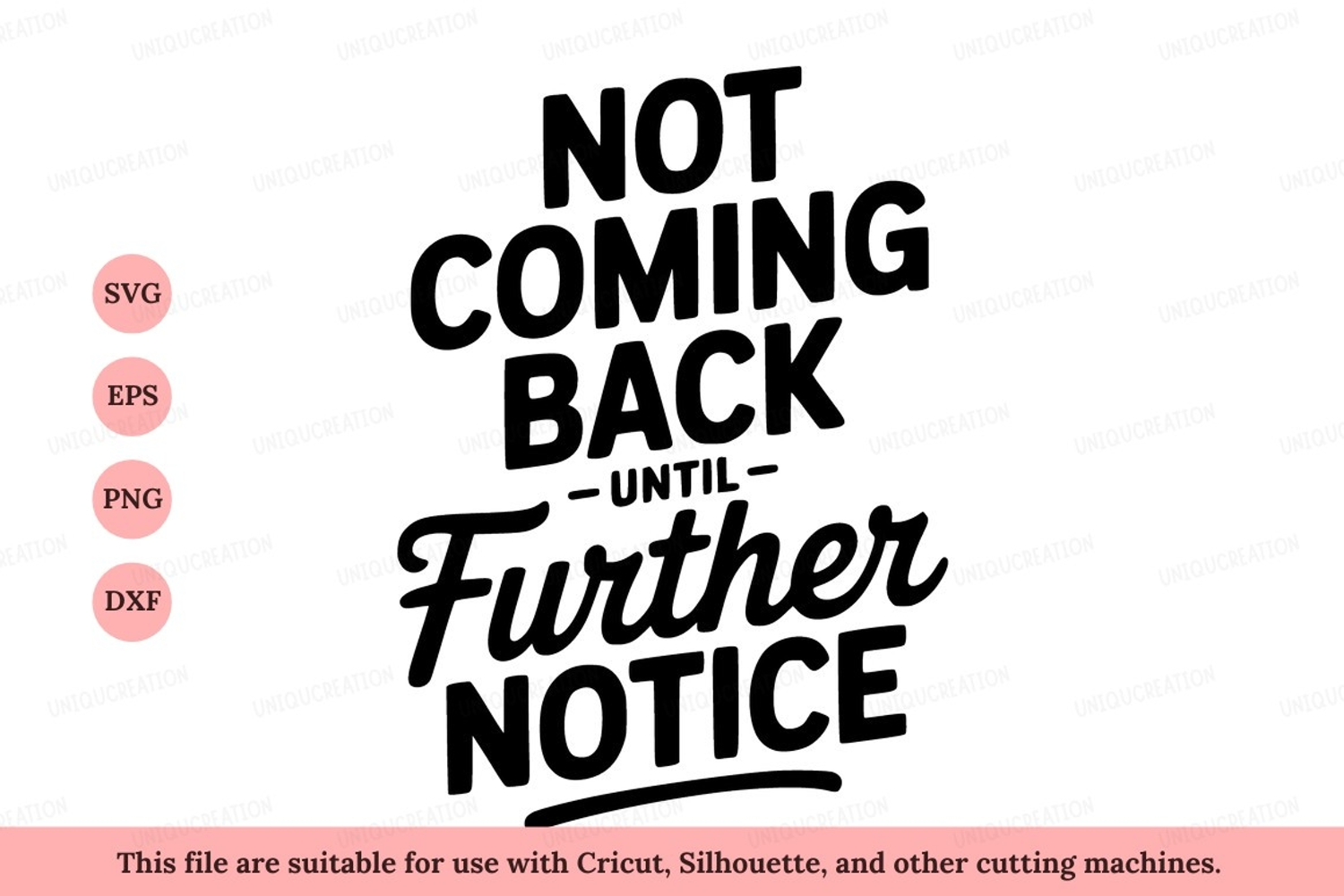 Similar Design Products to Not Coming Back Further Notice text lettering