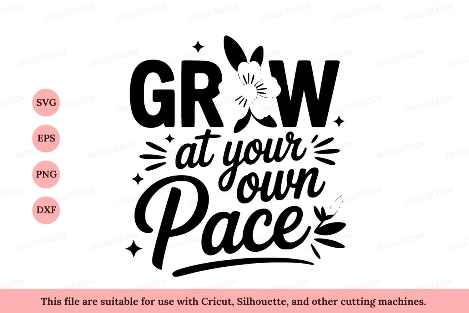 Lettering Text Quote Black Design Floral White Inspirational Grow Pace