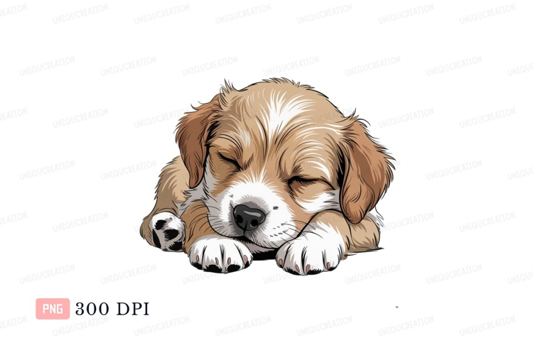 Sleeping fluffy puppy with brown white fur cute example image 1