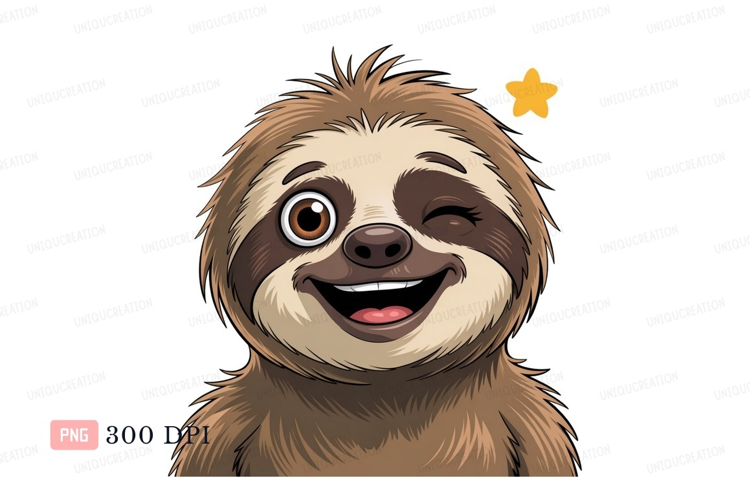Cartoon Animal Black Cute Brown Yellow White Star Winking Sloth