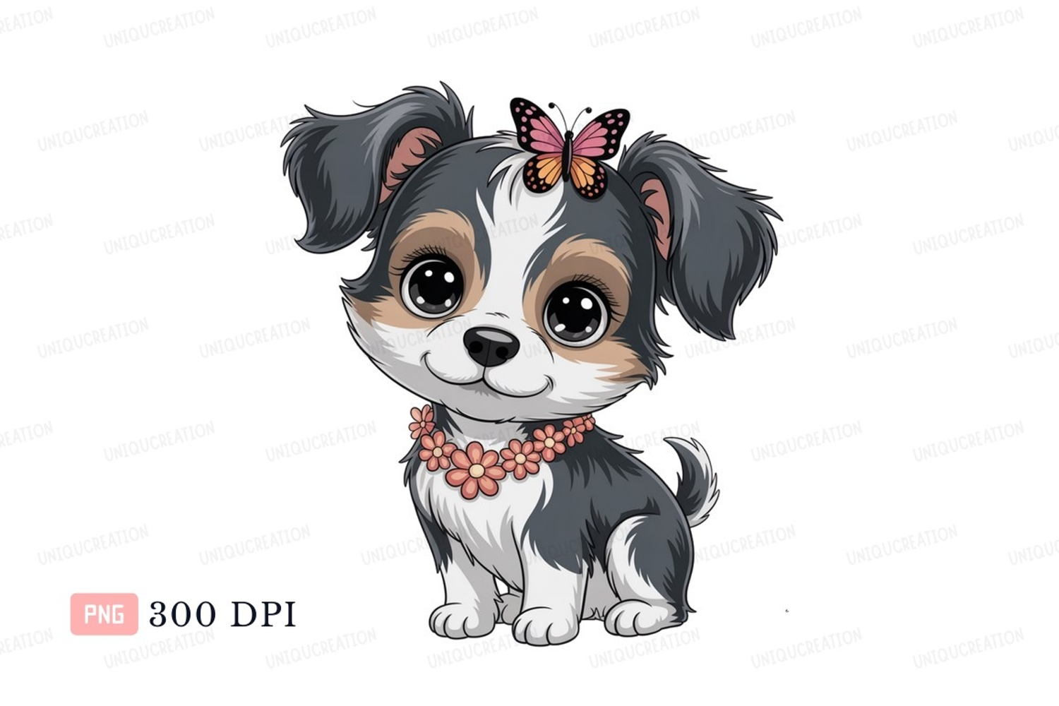 Adorable puppy with butterfly and flower collar flowers example image 1