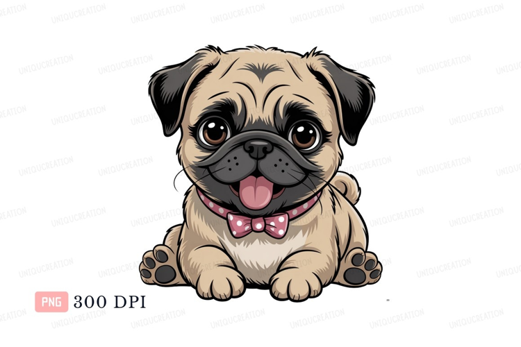 Adorable pug puppy wearing pink bow canine fawn example image 1