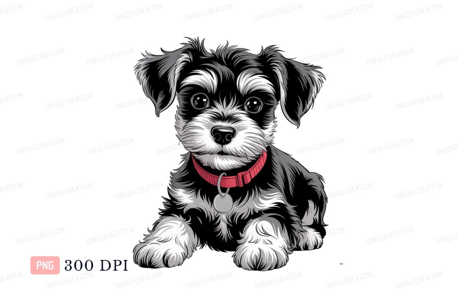 Similar Design Products to Black white fluffy dog with red collar puppy canine
