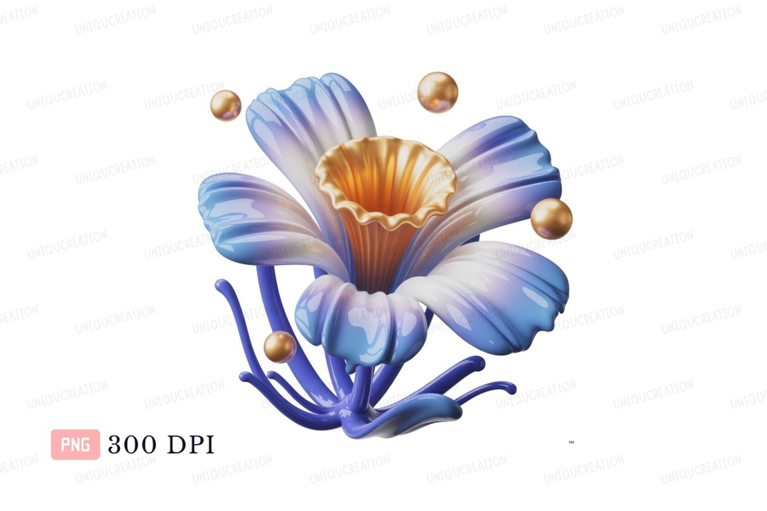 Art Flower Golden Digital Abstract Isolated Blue Png Render Pearls