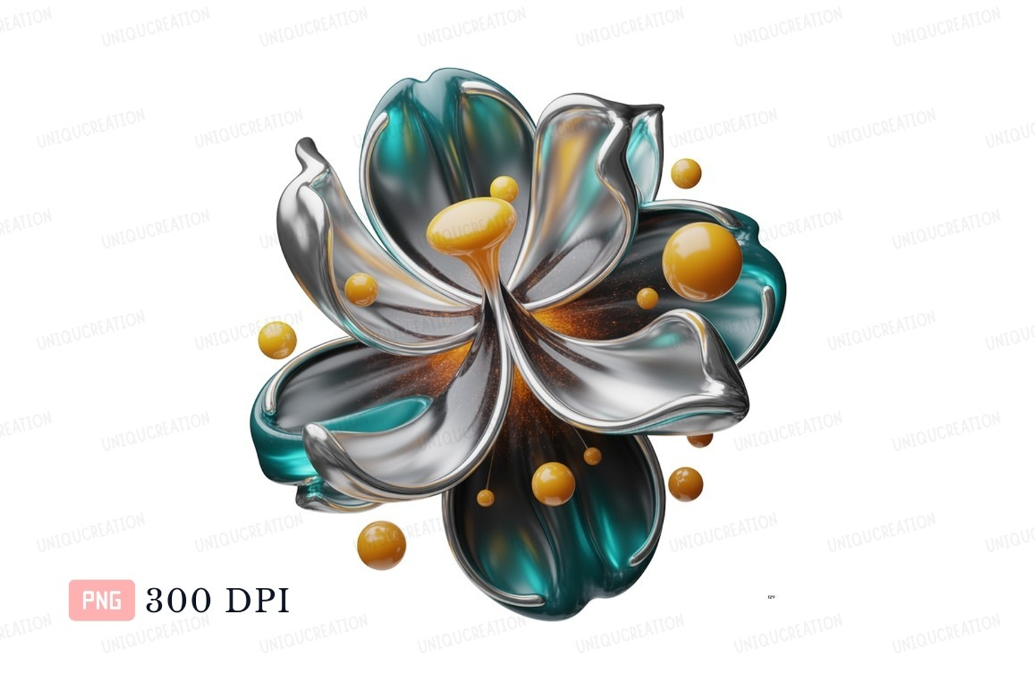 Art Gold Flower Digital Abstract Clipart Teal Png Metallic Spheres