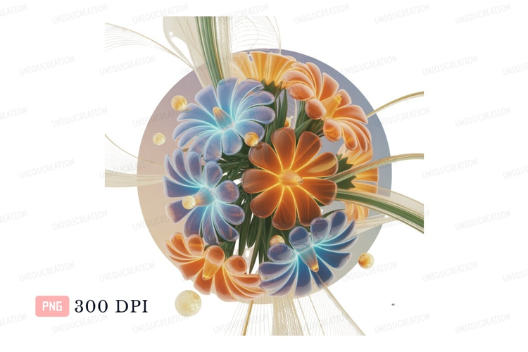Art Creative Design Flowers Digital Abstract Botanical Orange Blue Glowing