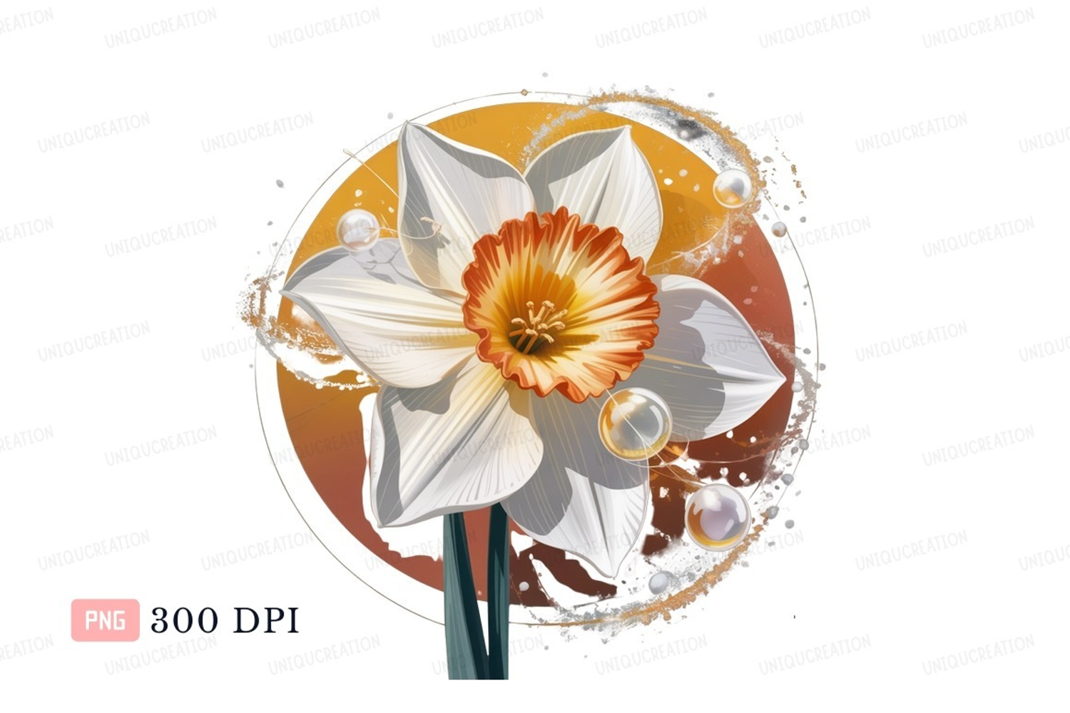 Similar Design Products to White daffodil with orange center flower yellow