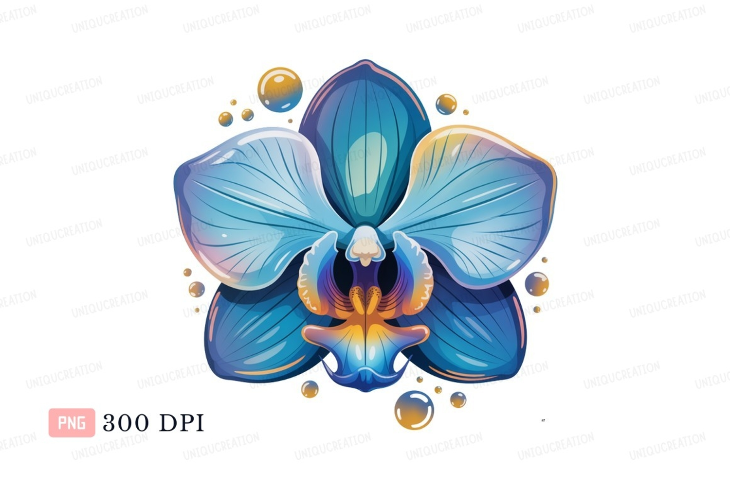 Elegant Nature Flower Golden Abstract Botanical Blue Orchid Vibrant Bubbles
