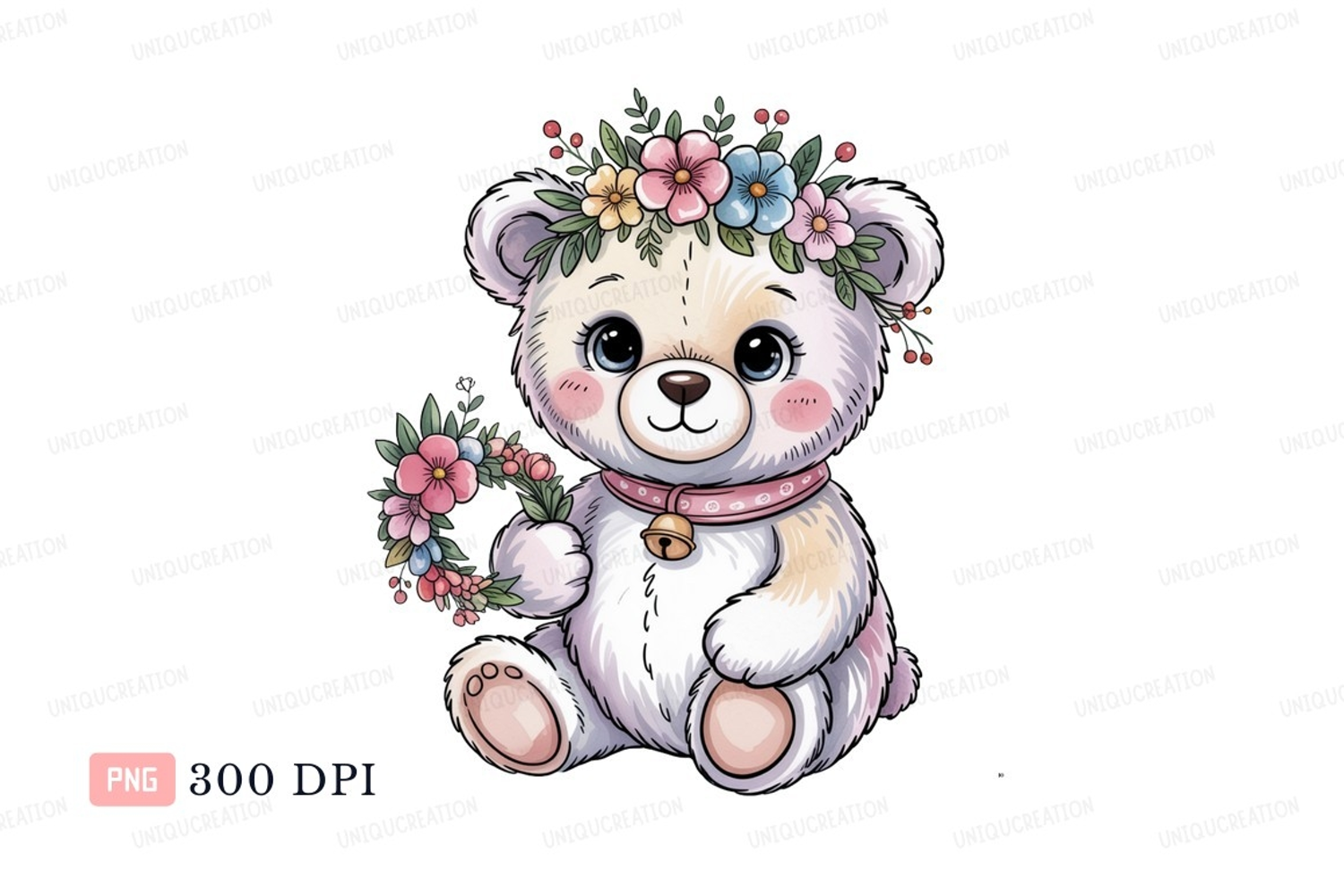 Similar Design Products to Fluffy bear with flower crown and wreath teddy
