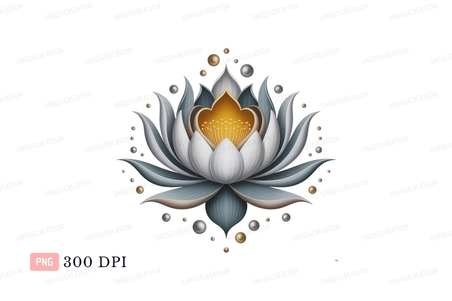 Ornate Lotus Flower With Golden Center white blue example image 1