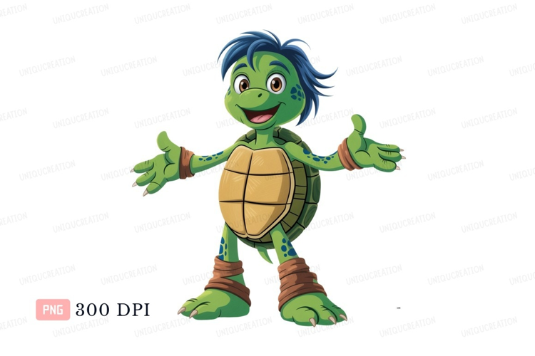 Similar Design Products to Happy cartoon turtle with blue hair green shell