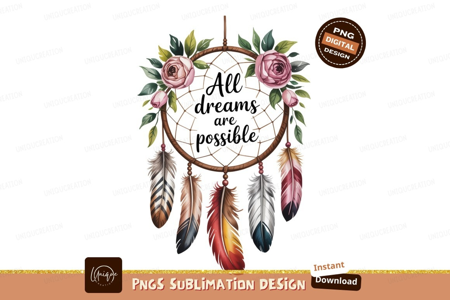 Dreamcatcher with flowers and feathers leaves inspirational example image 1